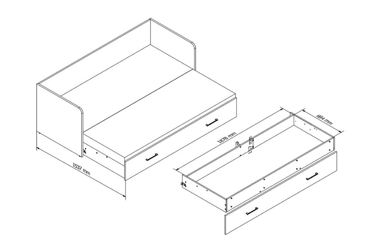 Tloušťka lamina je 22 mm/18 mm, ABS hrany - odolnost proti poškození. Celková plocha porozložení je 155 x 202,5 cm. Rozměr ložné plochy 195 x 150cm. Nosnost cca 100kg.