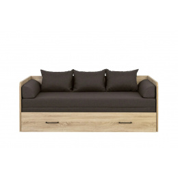 Rozkládací pohovka TETRIX je vyrobena z kvalitního foliovaného lamina v barvě dub wotan a polštáři v barvě Sawana 3. Čalounění pohovky je z kvalitní potahové látky s technologiemi Easy Clean (odpuzuje rozlité tekutiny) a PET Friendly (zabraňuje zachytávání chlupů od domácích mazlíčků). Přes den Vám pohovka TETRIX umožní pohodlné sezení a v noci ji jednoduše rozložíte na pohodlné lůžko díky rozkládacímu systému na skrytých kolečkách. Pohovku je možno rozložit pouhým jednoduchým potažením za úchytky. V rozloženém stavu je spací plocha o rozměrech 154x195 cm. Součástí rozkládací pohovky Tetrix je úložný prostor, do kterého je přístup zajištěn pomocí vyklápěcí desky. Snadnému zvedání pomáhá pružinový mechanismus na obou stranách postele, díky němuž je zvedání a zpětné sklopení deskového roštu velmi jednoduché. Úložný prostor je o rozměrech cca 187 x 68 x 16 cm. Dno úložného prostoru je ze sololitové desky, která má ve spodní části výztuhy. Zatížení úložného prostoru může být až 20 Kg.