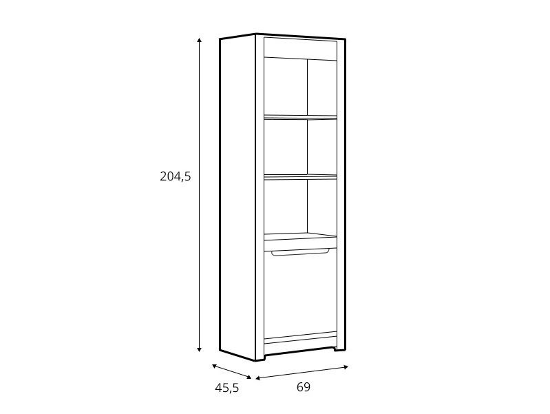 Rozměry: š. 69 cm / v. 204,5 cm / hl. 45,5 cm