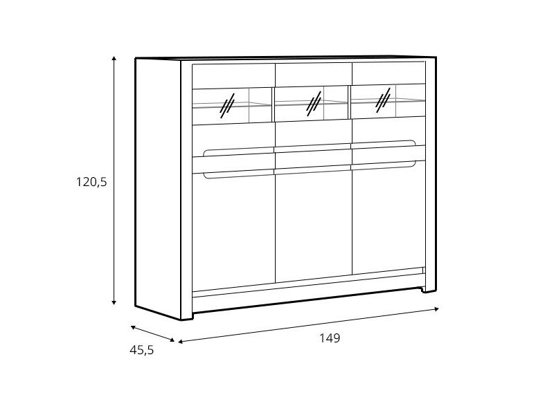 Rozměry: š. 149 cm / v. 120,5 cm / hl. 45,5 cm