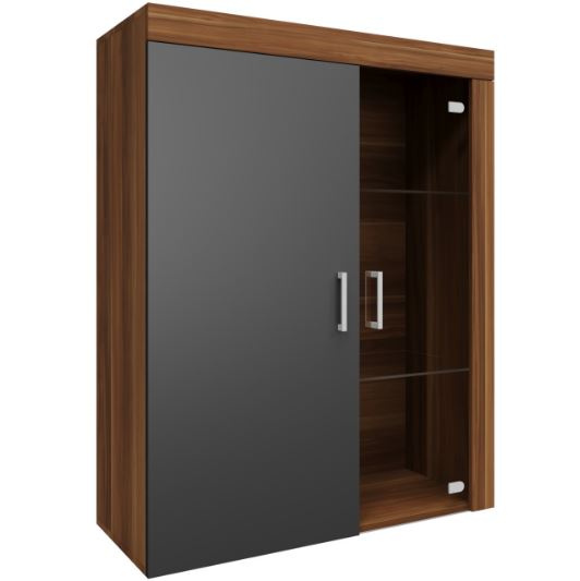 Závěsná vitrína 4 ze systému SAMBA - závěsná, policová, dvou dvířková, částečně prosklená