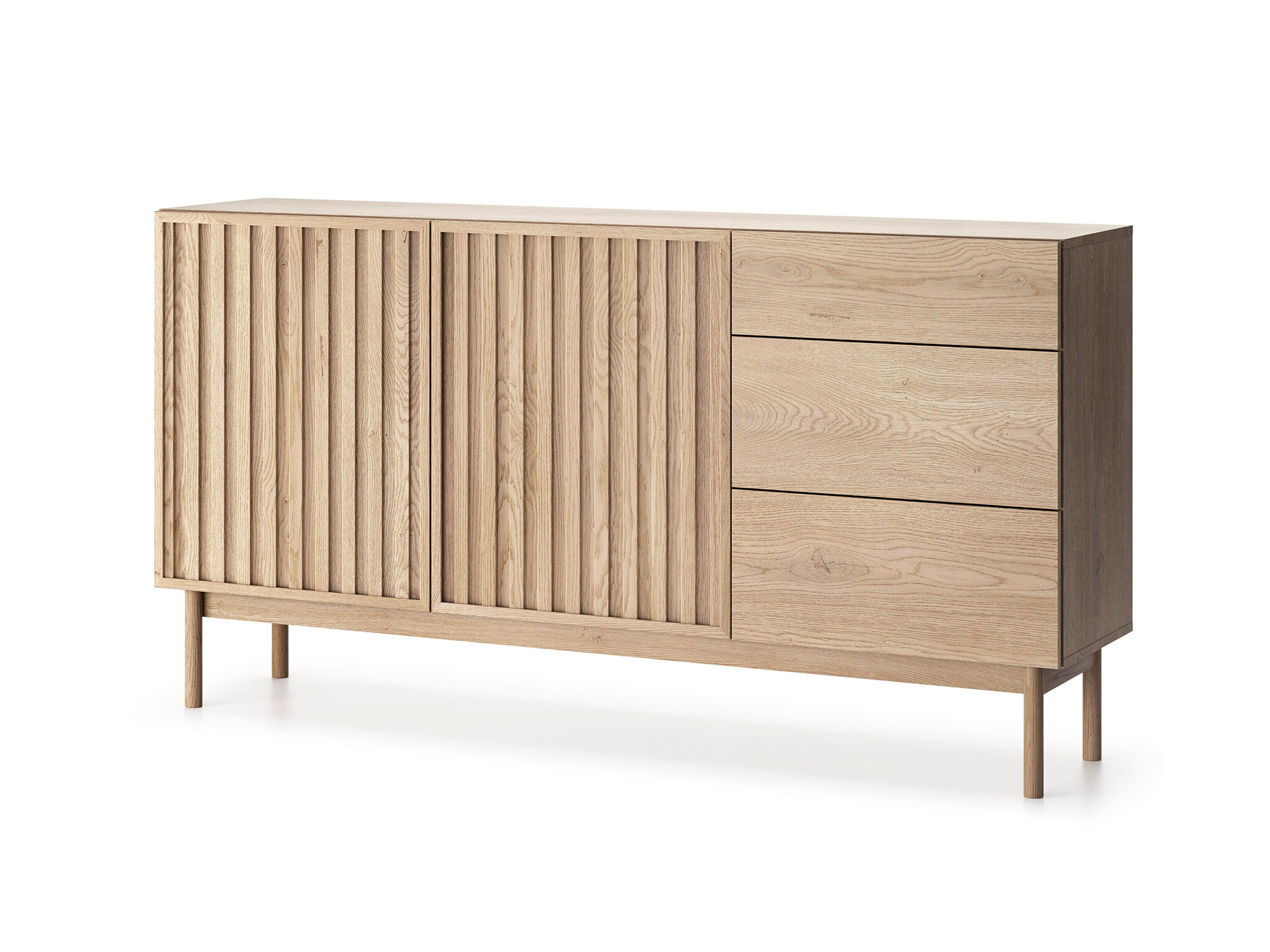 Kombinovaná komoda K2D3S ze systému SAORI - se třemi šuplíky, plnými dvířky, za kterými je umístěna jedna police