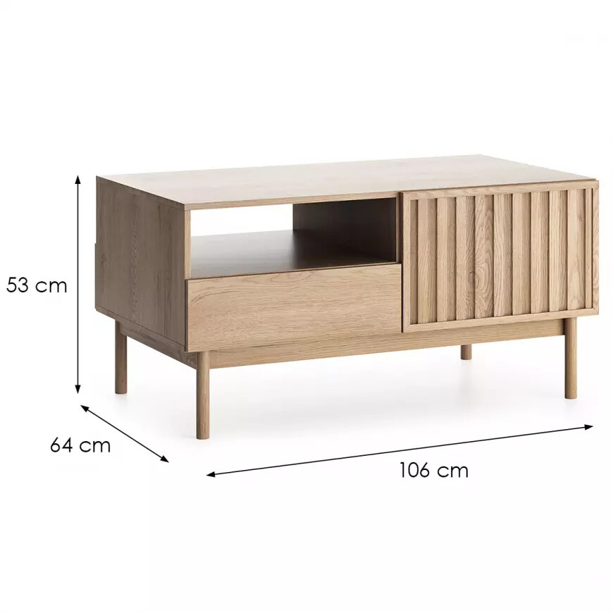 Konferenční stolek ST ze systému SAORI - s drážkovanými dvířky, výklopnými hladkými dvířky a otevřenou odkládací nikou