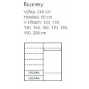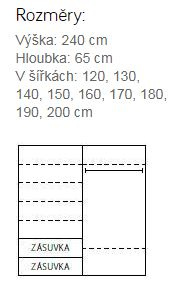 Tuto šatní skříň si můžete objednat v rozměrech 120 - 200 cm. Skříň UNI je dodávána v plné výbavě s posuvnými dveřmi. Dveře skříně možno doplnit zrcadly o šířce 50 cm (po stranách).