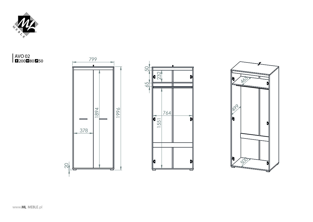 Rozměry: š. 80 cm / v. 200 cm / hl. 50 cm