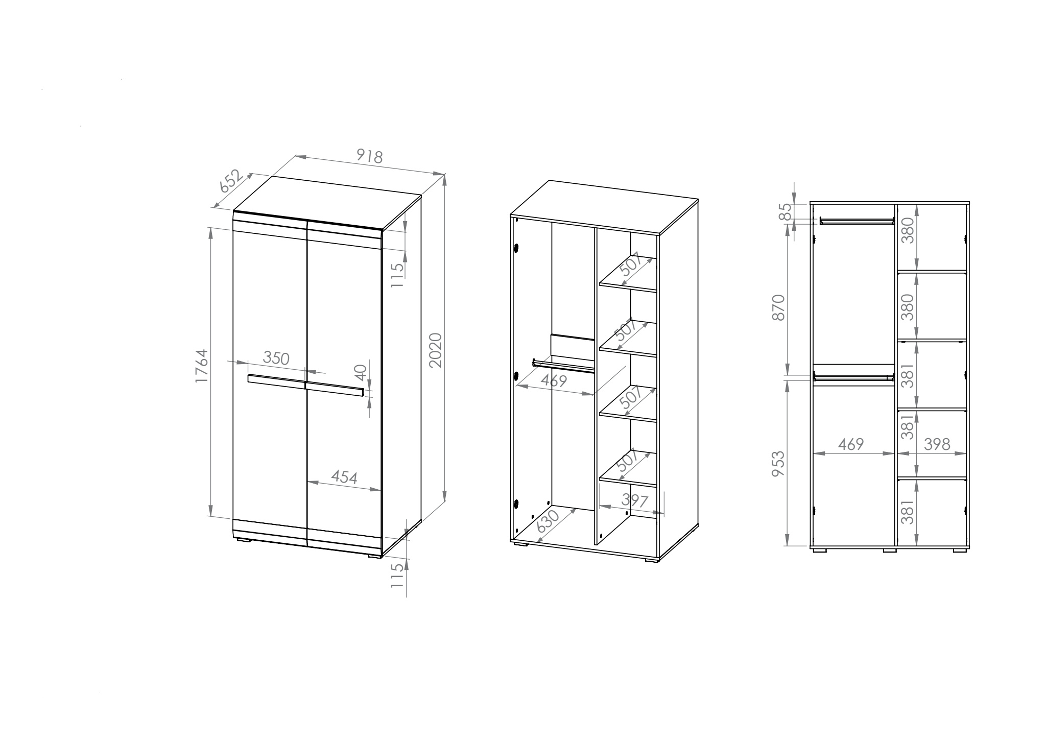Šatní skříň kombinovaná BLANCO 01, dvoudvéřová šatní skříň s policemi.