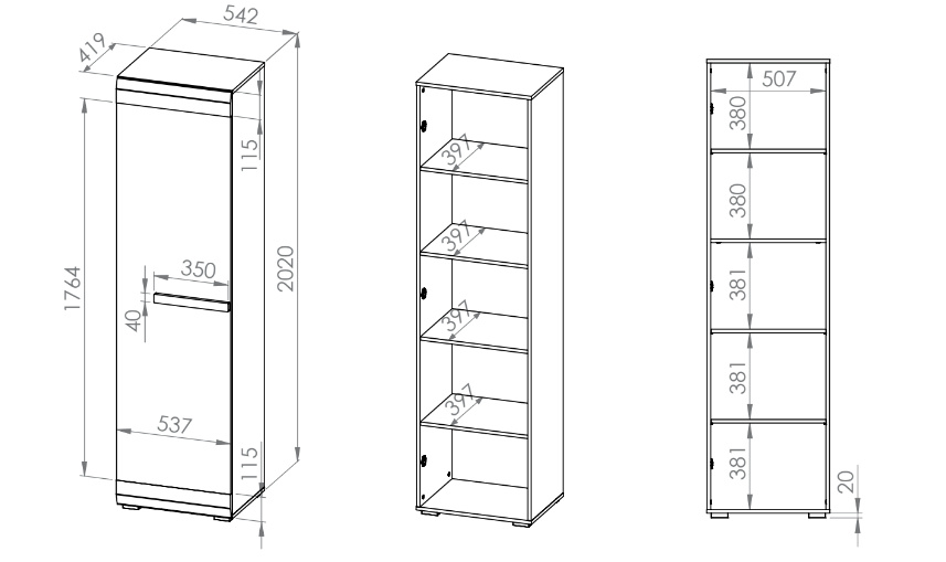 Rozměry: š. 55 cm / v. 202 cm / hl. 42 cm
