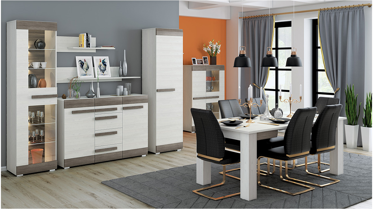 Systém BLANCO je moderní nábytek s přirozeným zabarvením, které poskytuje mnoho variant pro praktické uspořádání. Kombinace bílé a šedé borovice je perfektní jak pro moderní obývací pokoj, tak i pro vybavení pokoje teenagerů. Unikátní design dřevěných rukojetí dává nábytku charakter a styl. Sektor Blanco je praktické, originální řešení neobvyklého designu pro vybavení Vašich pokojů.