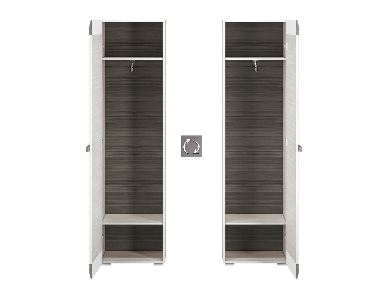 Šatní skříň BLANCO 19, jednodvéřová šatní skříň s policemi a výsuvnou šatní tyčí.