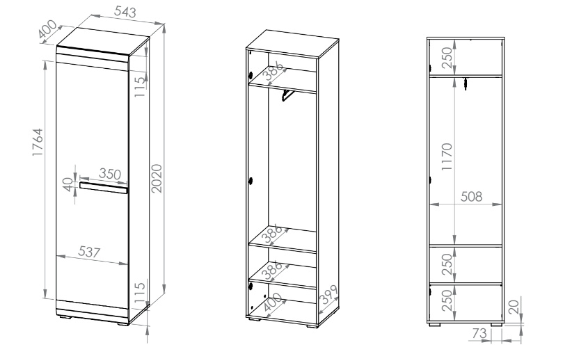 Rozměry: š. 55 cm / v. 202 cm / hl. 42 cm