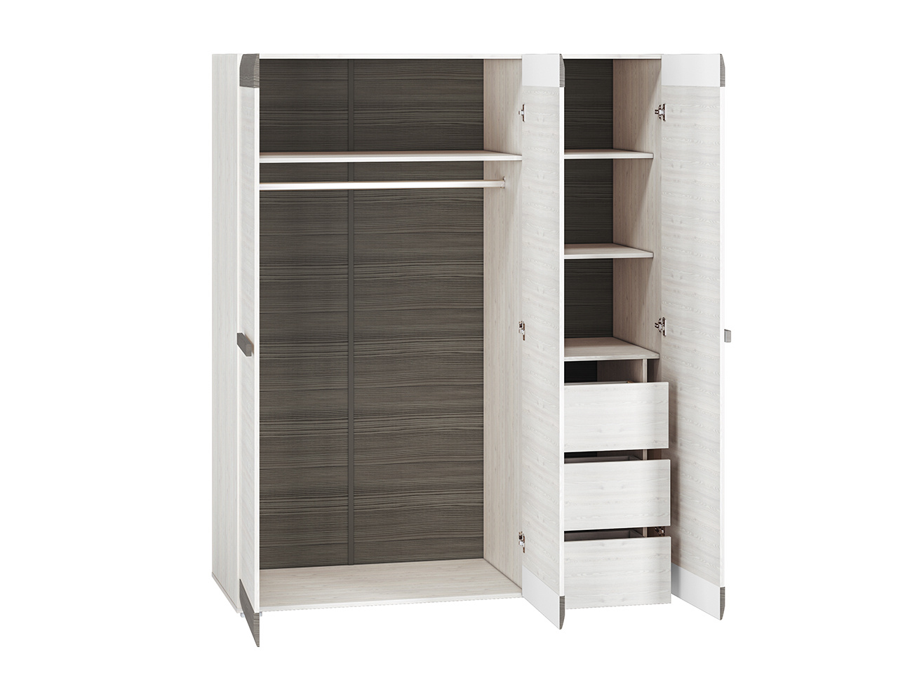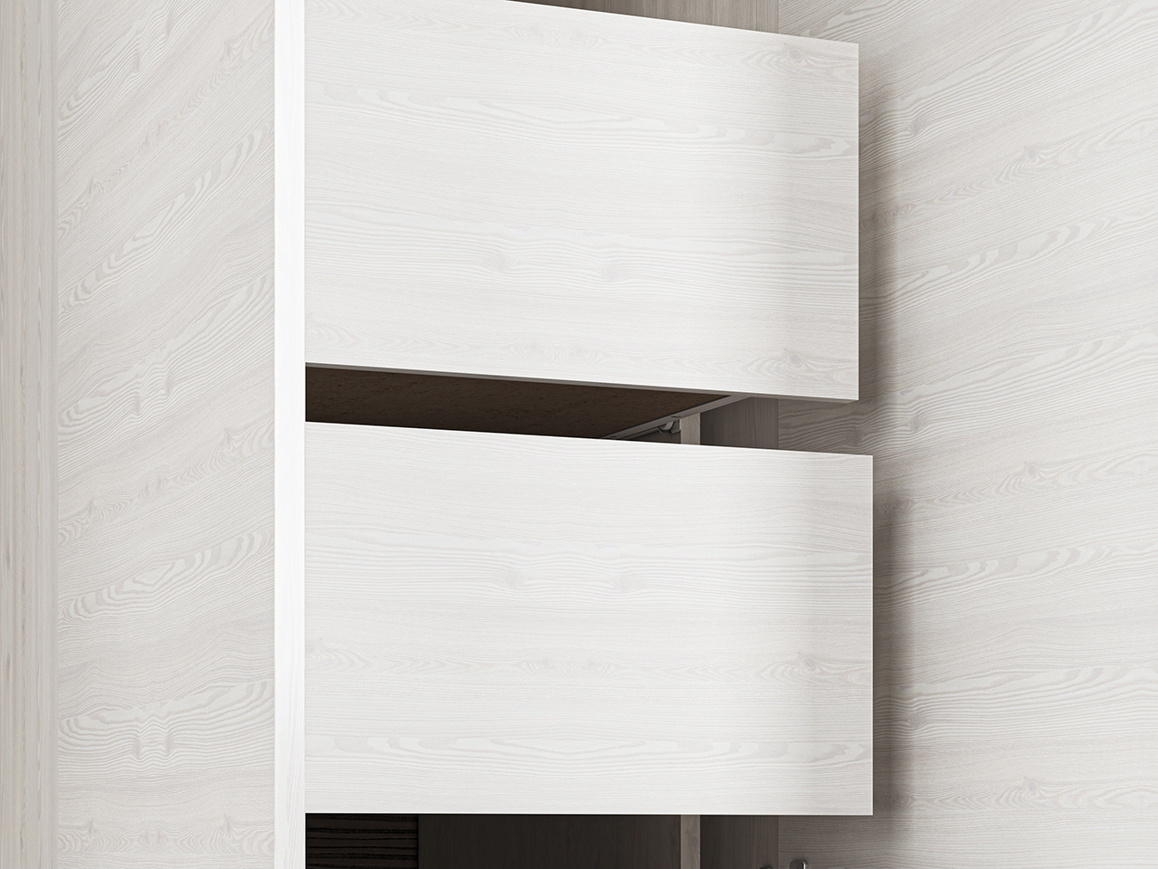 Šatní skříň BLANCO 27, kombinovaná šatní skříň s policemi a šatní tyčí a vestavnými šuplíky.