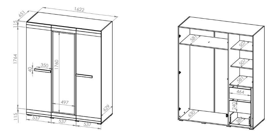 Rozměry: š. 163 cm / v. 202 cm / hl. 65 cm