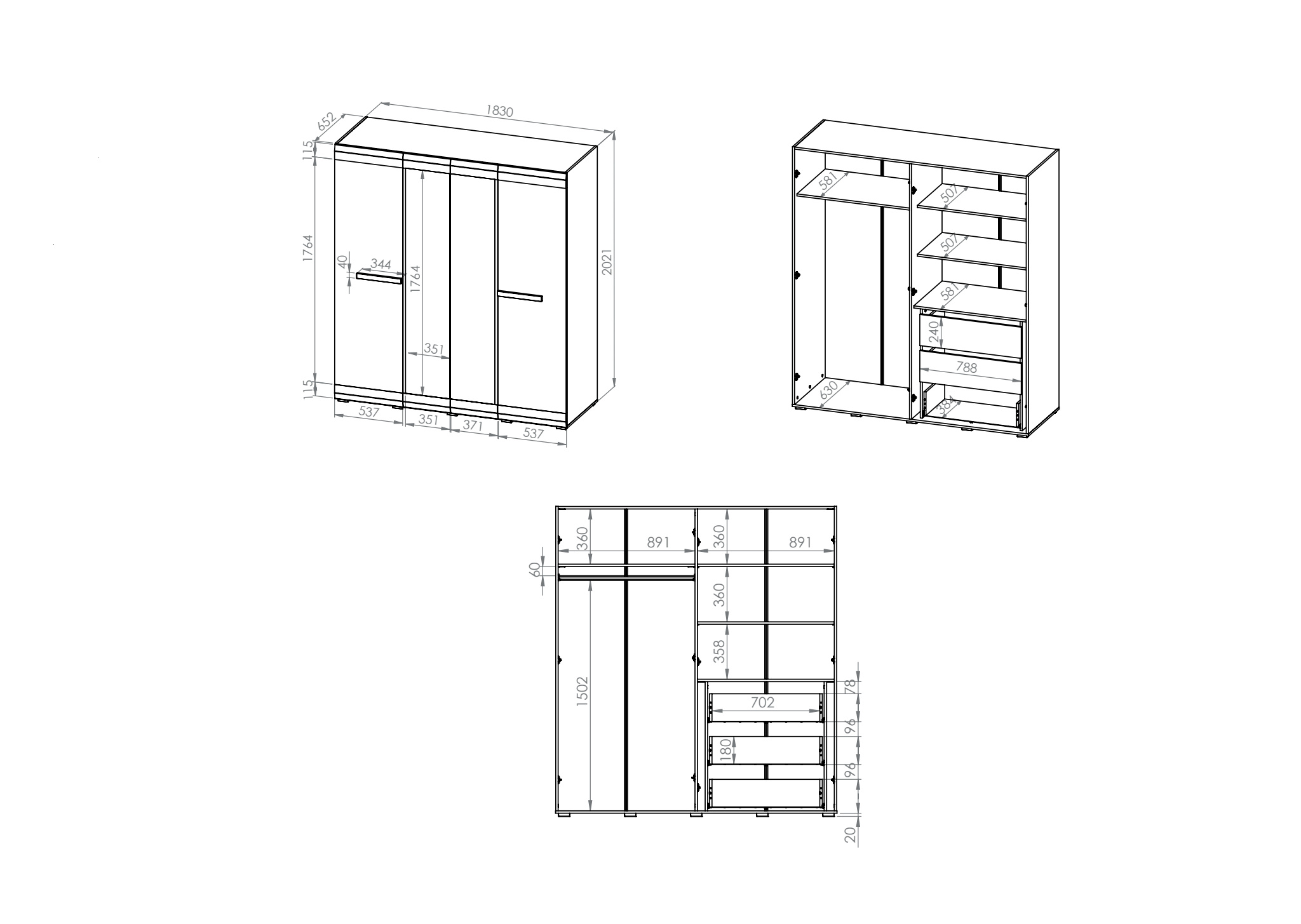 Rozměry: š. 183 cm / v. 202 cm / hl. 65 cm
