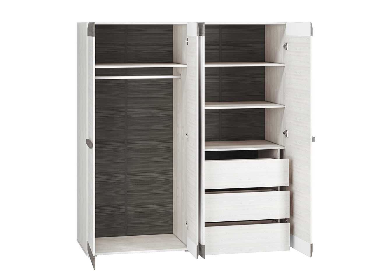 Šatní skříň BLANCO 28, kombinovaná šatní skříň s policemi a vestavnými šuplíky.