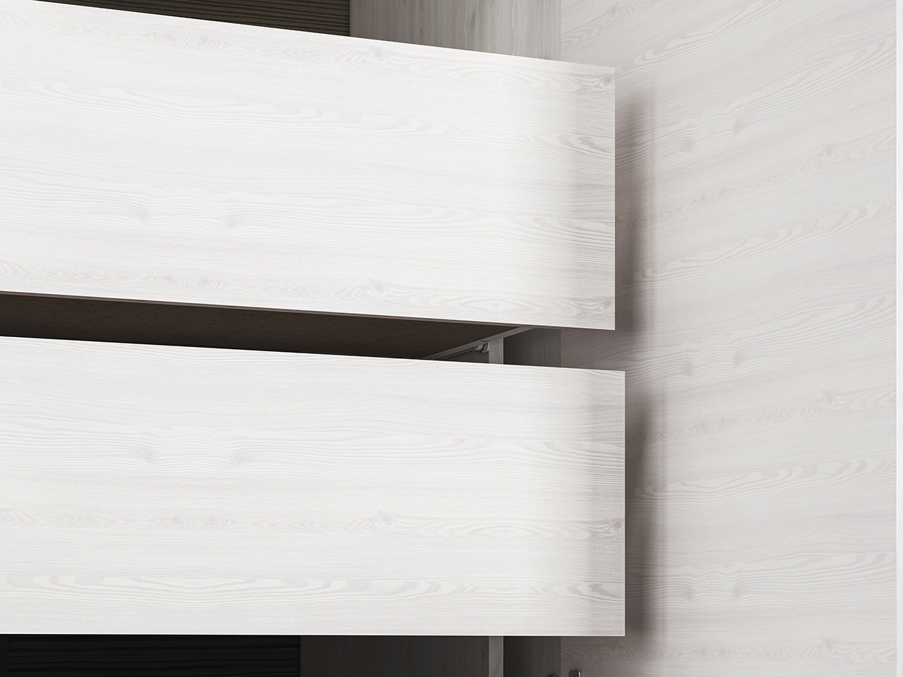 Systém BLANCO je moderní nábytek s přirozeným zabarvením, které poskytuje mnoho variant pro praktické uspořádání. Kombinace bílé a šedé borovice je perfektní jak pro moderní obývací pokoj, tak i pro vybavení pokoje teenagerů. Unikátní design dřevěných rukojetí dává nábytku charakter a styl. Sektor Blanco je praktické, originální řešení neobvyklého designu pro vybavení Vašich pokojů.