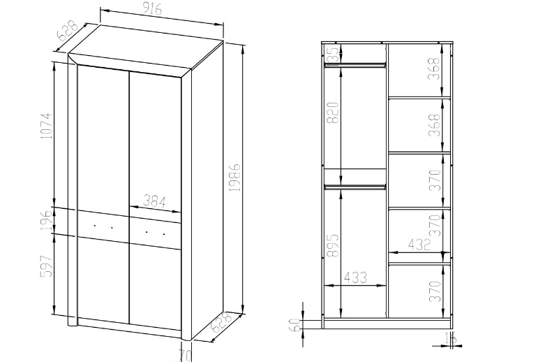Šatní skříň CASTEL 01 - kombinovaná, dvoudvířková šatní skříň s policemi.