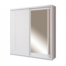 Kombinovaná šatní skříň s posuvnými dveřmi se zrcadlem, policemi a šatní tyčí. Možnost dokoupení šuplíkového kontejneru o rozměru š. 50 / v. 60 / hl. 40 cm, který se vkládá dovnitř do spodní části šatní skříně, za cenu 1.550,-- Kč.