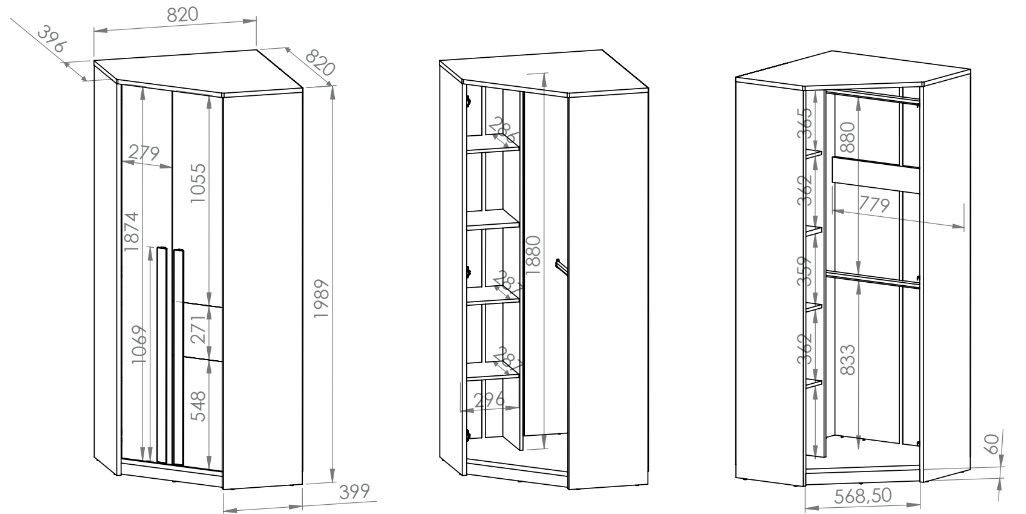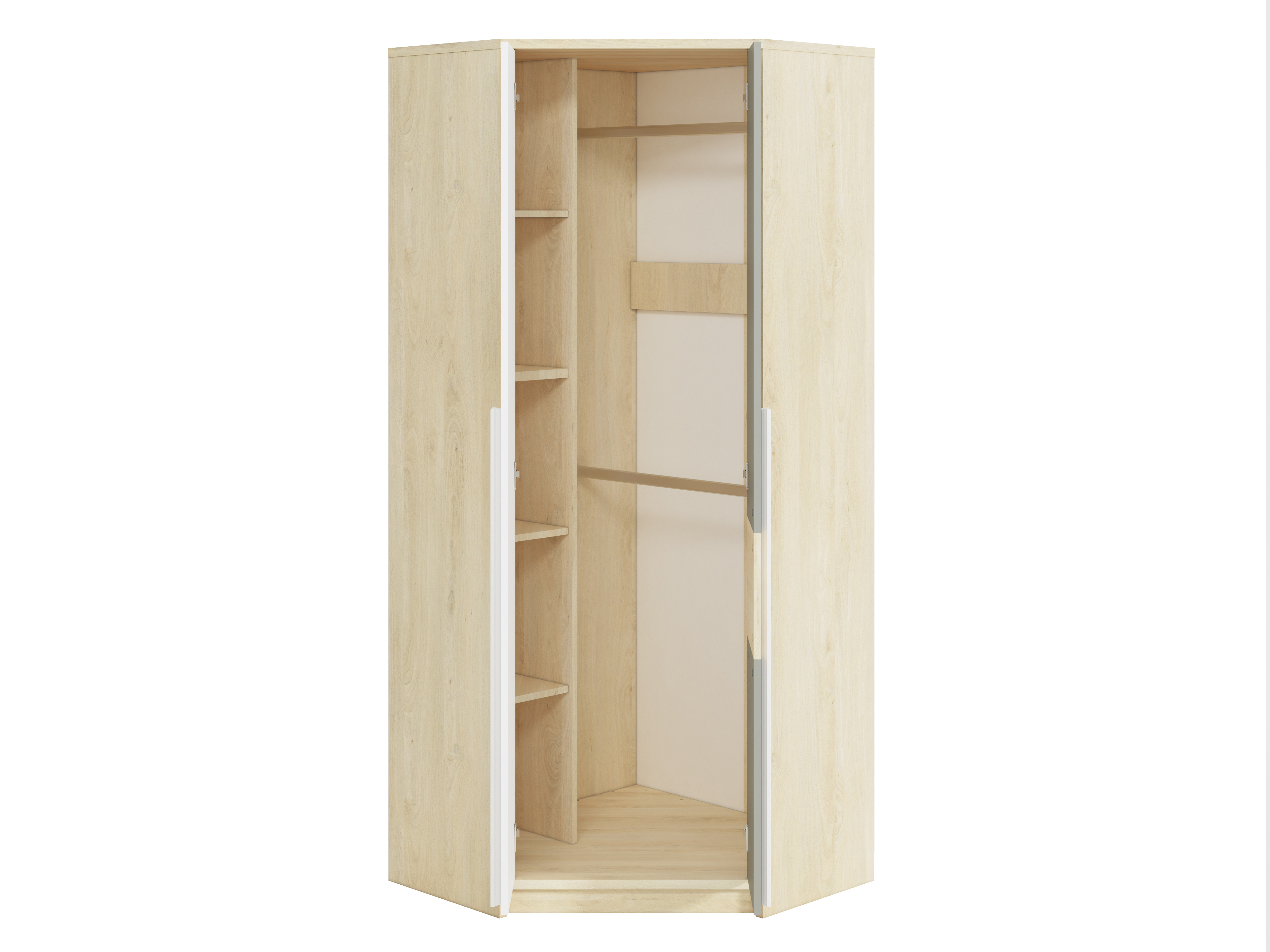 Šatní skříň DROP 01 - rohová s policemi a šatními tyčemi
