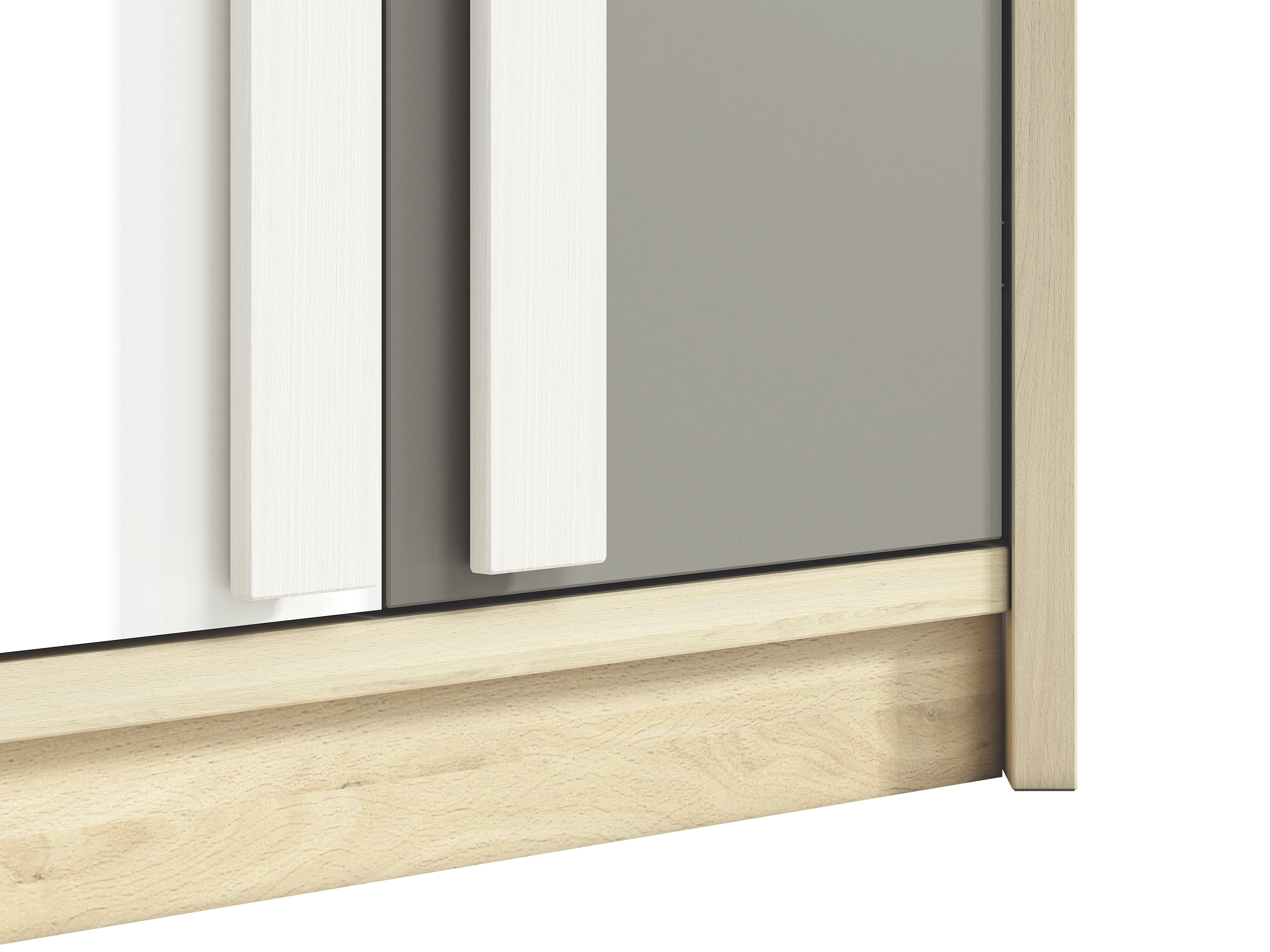 Sektorový nábytek DROP je v barevném provedení: buk fjord ( korpus ) / buk fjord, bíla, šedá ( čelní plochy )