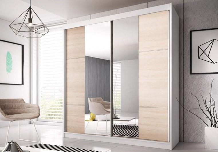 Šatní skříň EDDIE 36 vyniká svou jednoduchostí a prostou elegancí. Kombinací přírodního dekoru dub sonoma a bílé, budou působit velice příjemně na pohled. Díky šatní skříni EDDIE si vytvoříte útulnou ložnici, kde si budete moct užívat klidného a ničím nerušeného spánku. Skříň EDDIE disponuje policemi na drobné oděvy, šatní tyčí na zavěšení bund a také velikým zrcadlem na dvířkách, které projasní a opticky zvětší prostor. Volitelná montáž dveří.