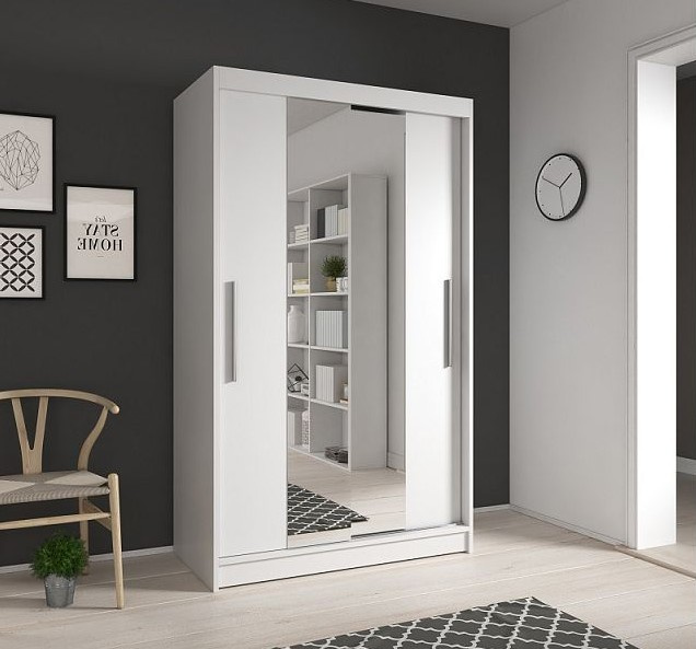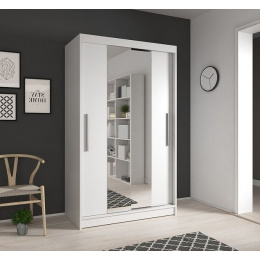 Univerzální víceúčelová šatní skříň v barvě bílé, může být využita v jakékoliv místnosti. Pokud tedy sháníte skříň do menších prostor, pak neváhejte a pořiďte si moderní šatní skříň KARINA v délce 120 cm. Prostorná šatní skříň KARINA je vyrobena z lamina o síle 16 mm v barevném propojení bílá mat se zrcadlem, které vám opticky zvětší a projasní místnost. Její vnitřní členění je zhotoveno velice prakticky, kdy je k dispozici část policová a část s šatní tyčí. Díky tomuto uspořádání se vejde do skříně opravdu mnoho oblečení.