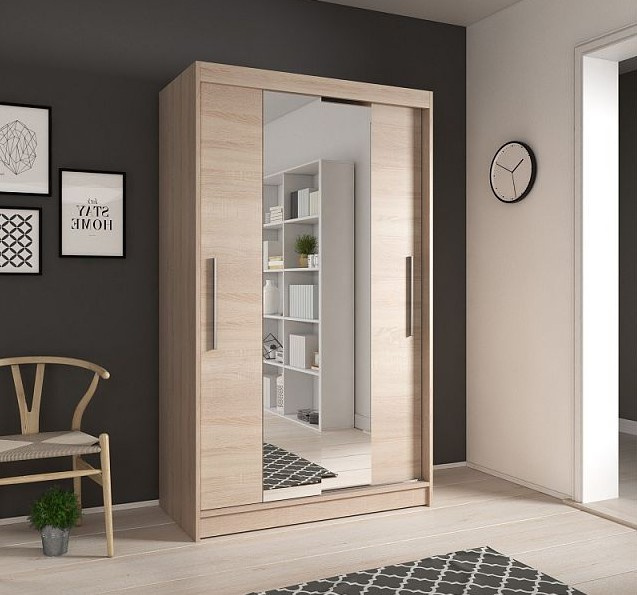 Univerzální víceúčelová šatní skříň v barvě dub sonoma, může být využita v jakékoliv místnosti. Pokud tedy sháníte skříň do menších prostor, pak neváhejte a pořiďte si moderní šatní skříň KARINA v délce 120 cm. Prostorná šatní skříň KARINA je vyrobena z lamina o síle 16 mm v barevném propojení dub sonoma se zrcadlem, které vám opticky zvětší a projasní místnost. Její vnitřní členění je zhotoveno velice prakticky, kdy je k dispozici část policová a část s šatní tyčí. Díky tomuto uspořádání se vejde do skříně opravdu mnoho oblečení.