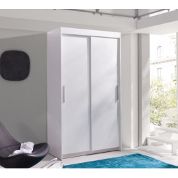 Kombinovaná šatní skříň KARO má posuvné dveře, z části je policová a z části druhé má šatní tyč
