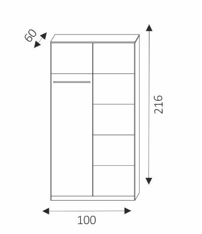 Rozměry: š. 100 cm / v. 216 cm / hl. 60 cm
