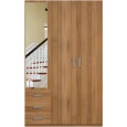 Skříň KOMBI 5A je dodávána s policemi, šatní tyčí a šuplíky, dveře nad šuplíky mají zrcadlo. Úchyty - kovové, možnost výběru.