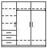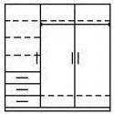 V základním provedení je skříň vybavená policemi + šuplíky + šatní tyčí + zrcadlem, viz rozkres.