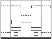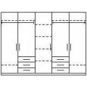 V základním provedení je skříň vybavená policemi + šuplíky + šatní tyčí, viz rozkres.