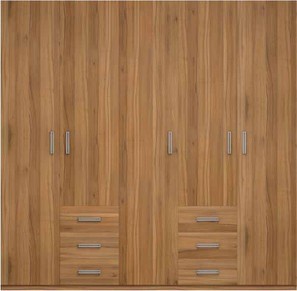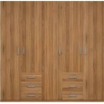 Skříň KOMBI 7A je dodávána s policemi, šatní tyčí a šuplíky. Úchyty - kovové, možnost výběru.