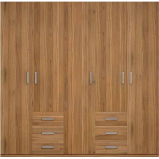 Šatní skříň KOMBI. Základem nábytku jsou kvalitní materiály od renomovaných českých výrobců zaručujících hygienickou nezávadnost a vysokou odolnost po celou dobu jeho užívaní. Poctivý kus nábytku má zesílený horní i spodní díl pro větší stabilitu, pevnost a delší užívání. Vše má plnou výbavu: dotah dveří, kartáče proti prachu, zásuvky s plnovýsuvem a dotahem, panty s tlumením.Vše je vyrobeno z plošného materiálu LTD 18 a 28 mm, který je opatřen ABS hranami, kvalitními závěsy klasických i posuvných dveří. Pojezdové kolejnice a vozíky dveří jsou z odolného materiálu, který zajistí dlouhé a bezproblémové užívání.