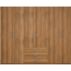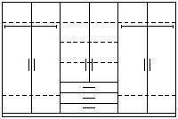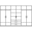 V základním provedení je skříň vybavená policemi + šuplíky + šatní tyčí + zrcadly, viz rozkres.