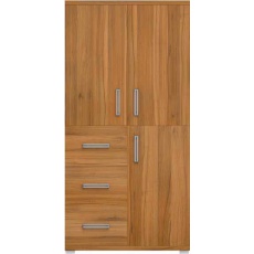 Šatní skříň KOMBI. Základem nábytku jsou kvalitní materiály od renomovaných českých výrobců zaručujících hygienickou nezávadnost a vysokou odolnost po celou dobu jeho užívaní. Poctivý kus nábytku má zesílený horní i spodní díl pro větší stabilitu, pevnost a delší užívání. Vše má plnou výbavu: dotah dveří, kartáče proti prachu, zásuvky s plnovýsuvem a dotahem, panty s tlumením.Vše je vyrobeno z plošného materiálu LTD 18 a 28 mm, který je opatřen ABS hranami, kvalitními závěsy klasických i posuvných dveří. Pojezdové kolejnice a vozíky dveří jsou z odolného materiálu, který zajistí dlouhé a bezproblémové užívání.