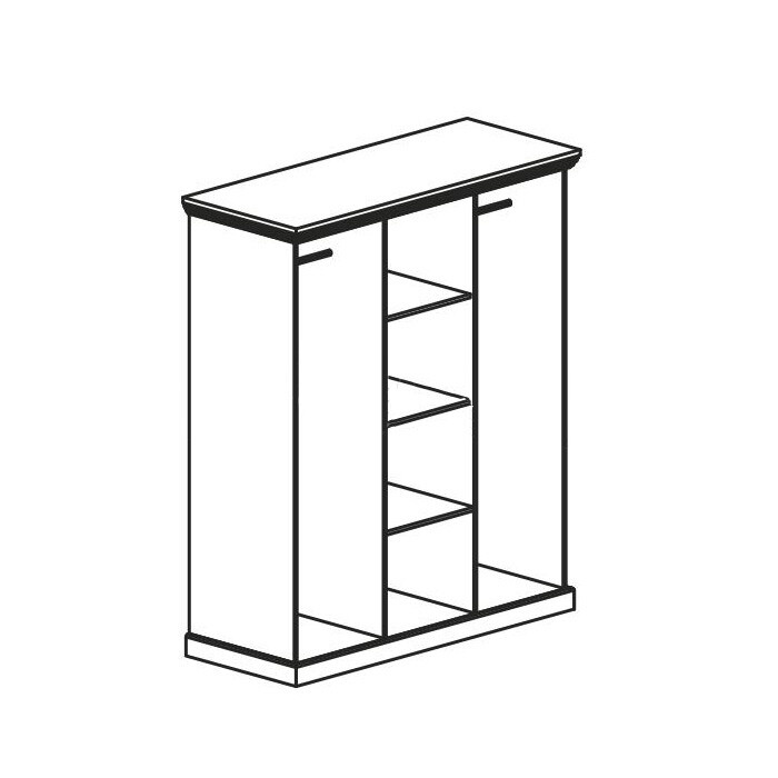 Šatní skříň kombinovaná S3D je třídveřová se zrcadlem ve střední části. Uvnitř skříně jsou po stranách šatní tyče, uprostřed police.