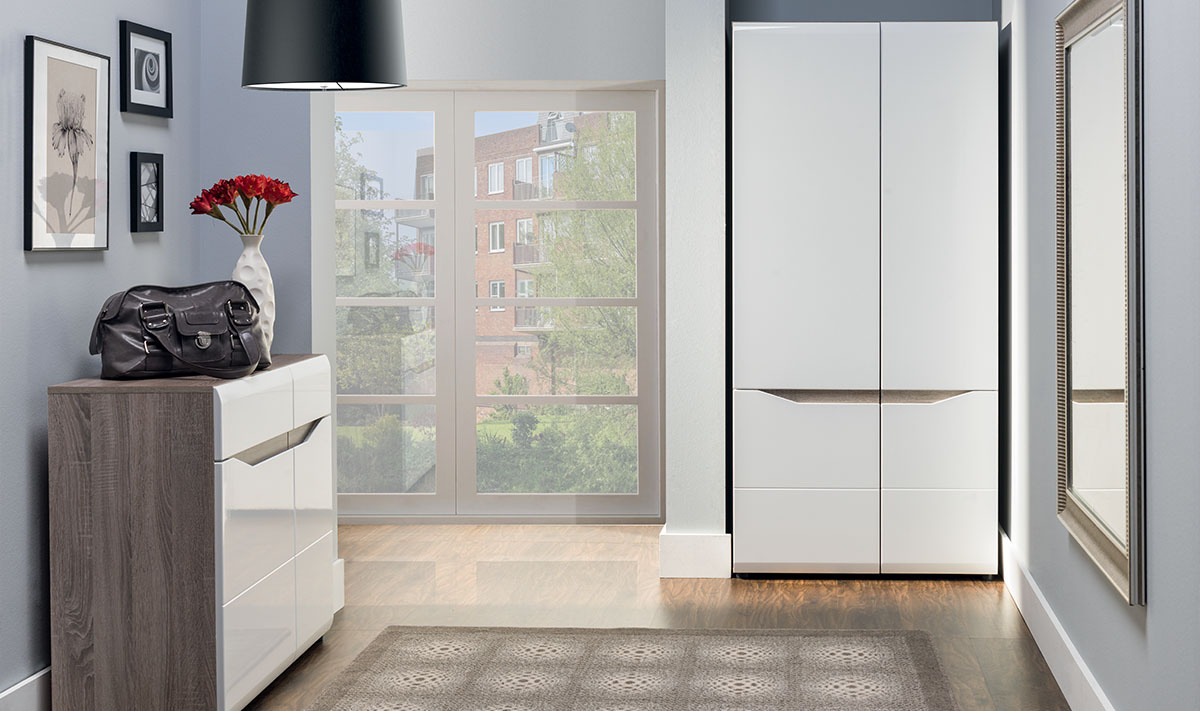 LIONEL je moderní elegantní systémový nábytek v atraktivním barevné kombinaci dub sonoma truflova / bílý lesk. Tento nábytek Vás zaujme, na první pohled, svými hladkými tvary a originálně řešenými úchyty dvířek a šuplíků, které nenarušují jejich plynulou línii. Sektorový nábytek LIONEL můžete využít při zařizování obývacího pokoje, jídelny, ložnice i studentského pokoje. Korpusy skříněk jsou vyrobeny z kvalitní dřevotřísky v barvě dub sonoma truflový. Dvířka jsou z foliované MDF v bílé barvě ve vysokém lesku. Komfort při používání dvířek a šuplíků zajišťují tlumiče pro tiché dovírání.