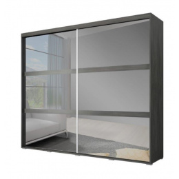 Šatní skříň LOCA 230 je stylová skříň do vaší domácnosti. Hodí se do prostorných místností, kde zaujme čestné místo. Skříň LOCA je vyrobena z lamina, barevné provedení je v tónu borovice černá. Úložný prostor skříně LOCA je prakticky rozdělen na části s policemi a šatní tyčí. Navíc je skříň opatřena posuvnými dveřmi, které zbytečně nezasahují do prostoru při otevírání nábytku. Zrcadla na dveřích opticky zvětšují prostor.