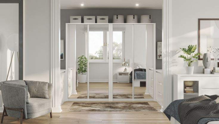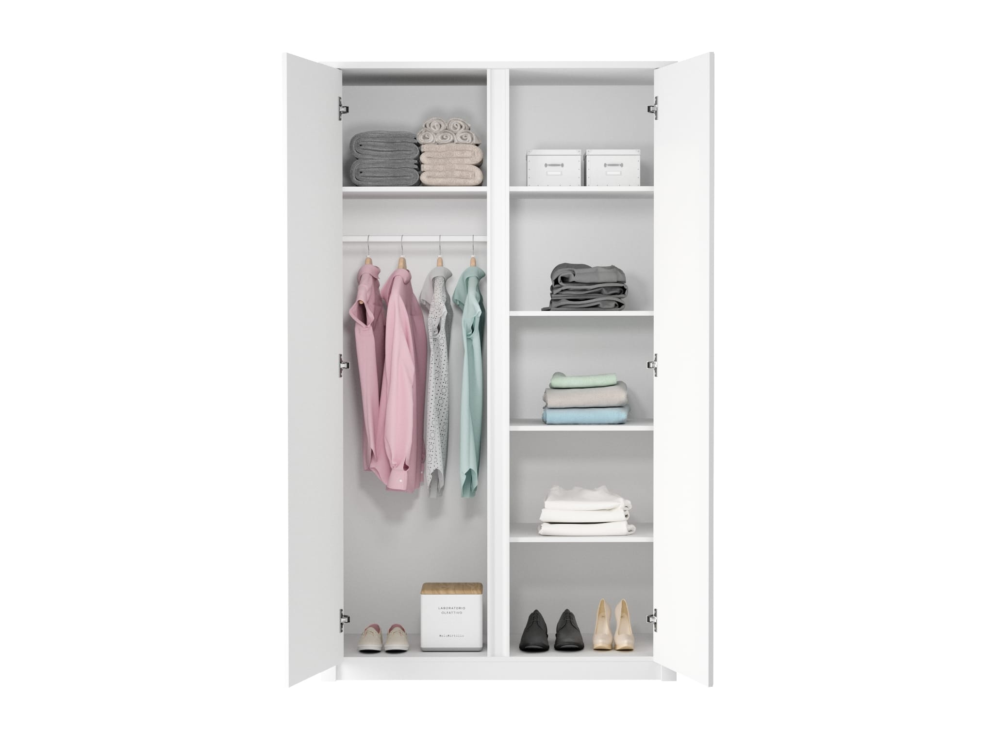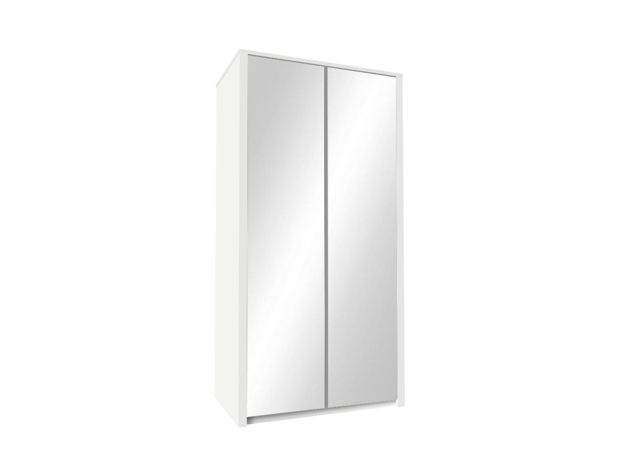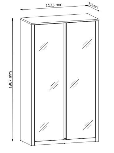 Moderní kombinovaná šatní skříň MAXIM se zrcadly. Skříň šíře 113,3 cm je rozdělena do dvou částí. Pravá část skříně je šatní s jednou policí a tyčí na zavěšení ramínek. Levá část skříně je policová. Díky vnitřnímu uspořádání skříně má každá věc své místo. Skříň je vyrobená z kvalitního lamina v bílé barvě, má bezúchytové otevírání dveří, na obou křídlech dveří jsou zrcadla.