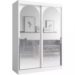Šatní skříň MODIN - posuvné dveře se zrcadly, uvnitř police a šatní tyč