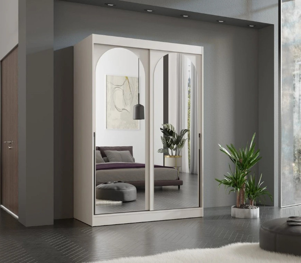 Šatní skříně s posuvnými dveřmi je nejpraktičtější řešení moderního interiérového designu. Skříň z kolekce MODIN umožňuje optimální využití prostoru a je ideální i pro malé prostory. Otevírání a zavírání posuvnými dveřmi je mimořádně pohodlné. Šetří místo a zaručuje rychlý přístup k obsahu skříně. Prostorná šatní skříň MODIN poskytuje dostatek prostoru pro uložení oblečení a dalších předmětů, je skvělým řešením každého moderního interiéru, jako je ložnice, obývací pokoj i předsíň. Bílá barva zdůrazňuje její univerzální využití a minimalistický styl. Šatní skříň s posuvnými dveřmi a se zrcadly opticky zvětšuje prostor a vypadá mimořádně elegantně. Díky své všestrannosti ji lze snadno sladit s konkrétním interiérovým projektem.