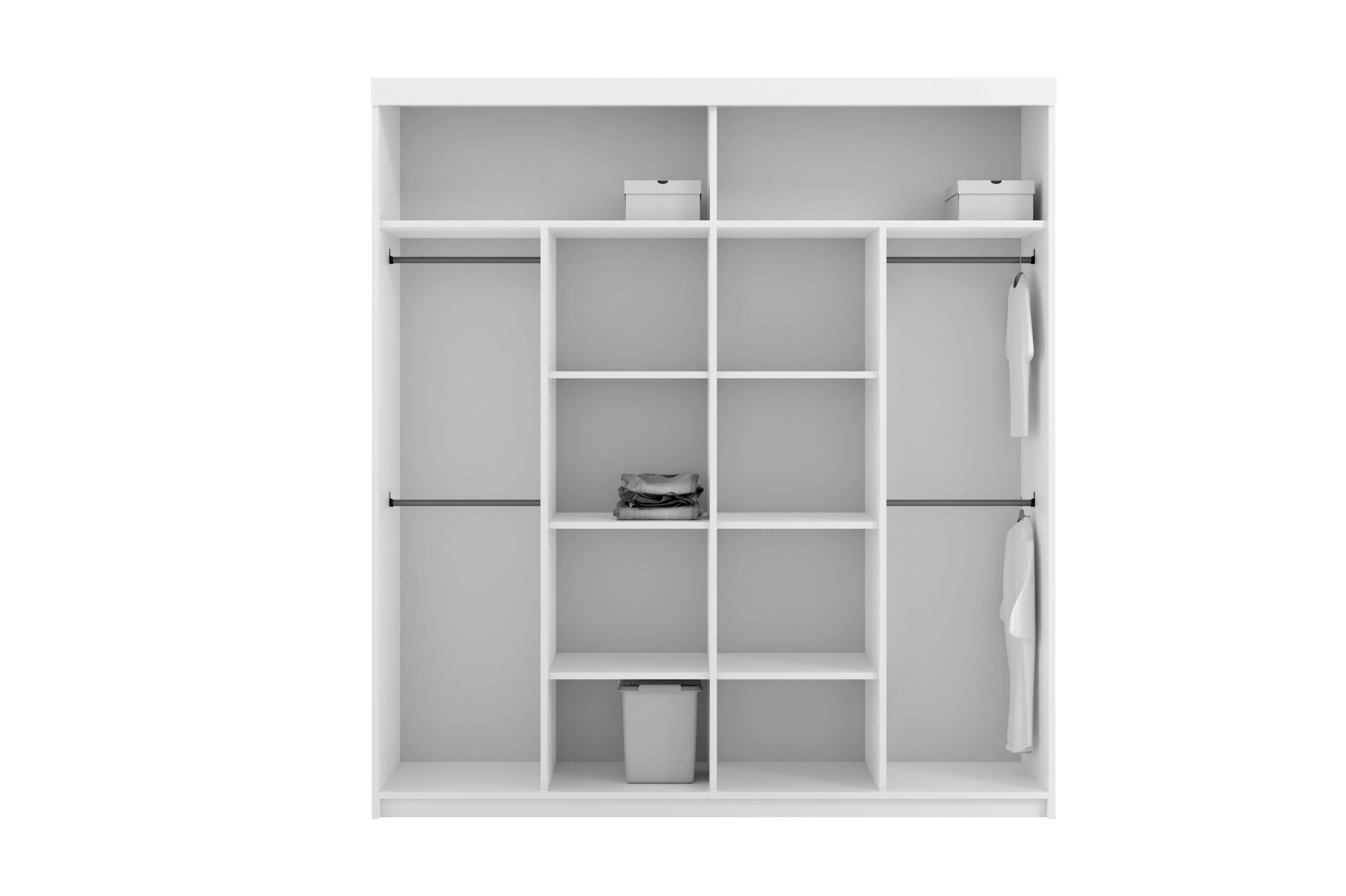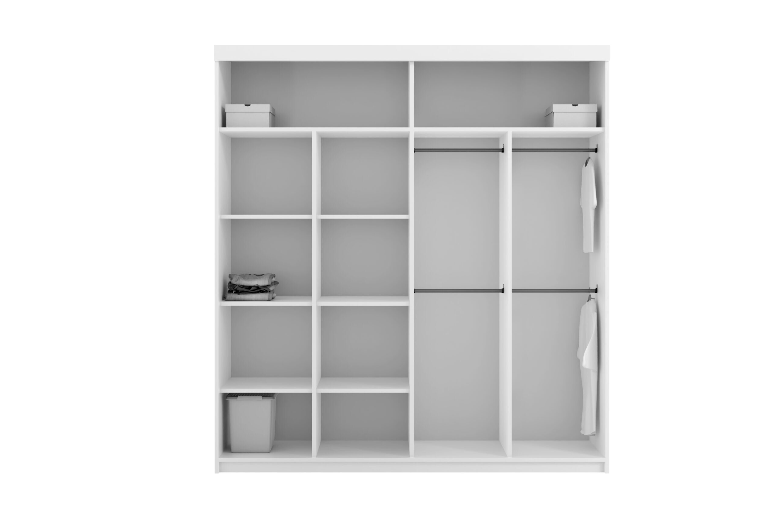 Praktická šatní skříň Nova 200, s posuvnými dveřmi v moderním barevném provedení dub sonoma se zrcadlem. Skříň šíře 200 cm je rozdělena na dvě částí, v níž jsou police a šatní tyče, které si můžete uspořádat dle svých potřeb. Díky vnitřnímu uspořádání skříně má každá věc své místo. Úchyty jsou stříbrný plast.