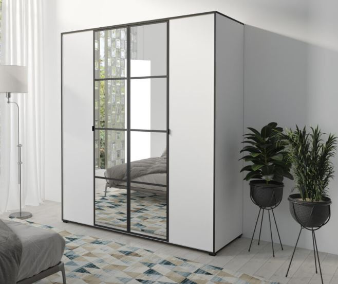 Velká šatní skříň OSLO I 180 s klasickými otevíráním dveří a zrcadly nabízí množství úložného prostoru pro uložení všech Vašich věcí. Lze ji použít samostatně v ložnici nebo předsíni, nebo s ní můžete doplnit nábytek ve stejném dekoru. Skříň je vyrobená z kvalitního lamina v barevném provedení bílá, ozdobné rámečky jsou v černé barvě. Úchytky jsou černé plastové .