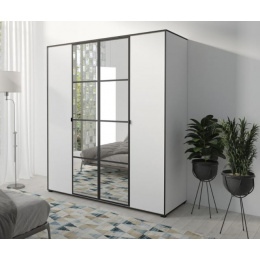 Šatní skříň OSLO I 180 - čtyř dveřová se zrcadly, v polovině police, v polovině druhé šatní tyč a jedna police nahoře