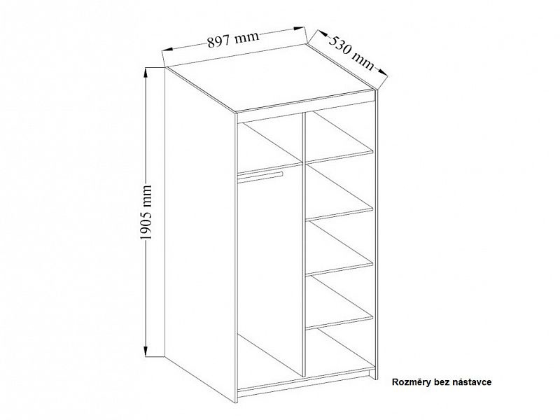 Šatní skříň SALEM je dodávána kompletně vybavená policemi, šatní tyčí a nádstavcem. Vyrábí se z kvalitního lamina v barevném provedení dub sonoma.Celkový rozměr: