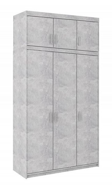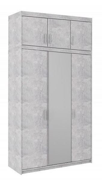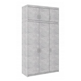 Šatní skříň SALEM je dodávána kompletně vybavená policemi, šatní tyčí a nádstavcem. Vyrábí se z kvalitního lamina v barevném provedení beton. Skříň je třídveřová s nádstavcem.