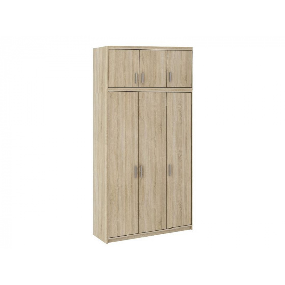 Šatní skříň SALEM je dodávána kompletně vybavená policemi, šatní tyčí a nádstavcem. Vyrábí se z kvalitního lamina v barevném provedení dub sonoma.