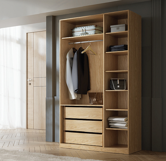 Moderní šatní skříně jsou praktickým řešení moderního interiéru. Skříň SORENO 135 umožňuje optimální využití prostoru a je ideální i pro malé prostory. Prostorná šatní skříň SORENO poskytuje dostatek prostoru pro uložení oblečení a dalších předmětů, je skvělým řešením každého moderního interiéru, jako je ložnice, obývací pokoj i předsíň. Barevná kombinace dub jarní / macadamia zdůrazňuje její univerzální využití a minimalistický styl. Díky své všestrannosti ji lze snadno sladit s konkrétním interiérovým projektem.