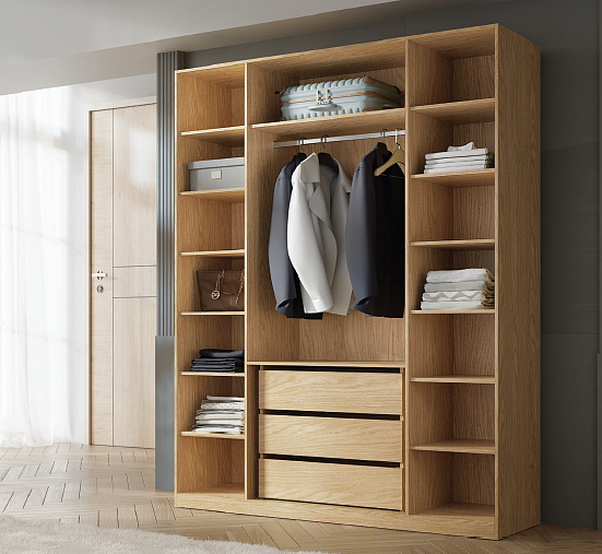 Šatní skříň SORENO - čtyřdveřová, uvnitř police, šatní tyč a šuplíky