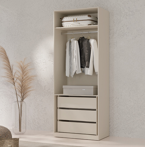 Moderní šatní skříně jsou praktickým řešení moderního interiéru. Skříň SORENO 90 umožňuje optimální využití prostoru a je ideální i pro malé prostory. Prostorná šatní skříň SORENO poskytuje dostatek prostoru pro uložení oblečení a dalších předmětů, je skvělým řešením každého moderního interiéru, jako je ložnice, obývací pokoj i předsíň. Barevné provedení macadamia zdůrazňuje její univerzální využití a minimalistický styl. Díky své všestrannosti ji lze snadno sladit s konkrétním interiérovým projektem.